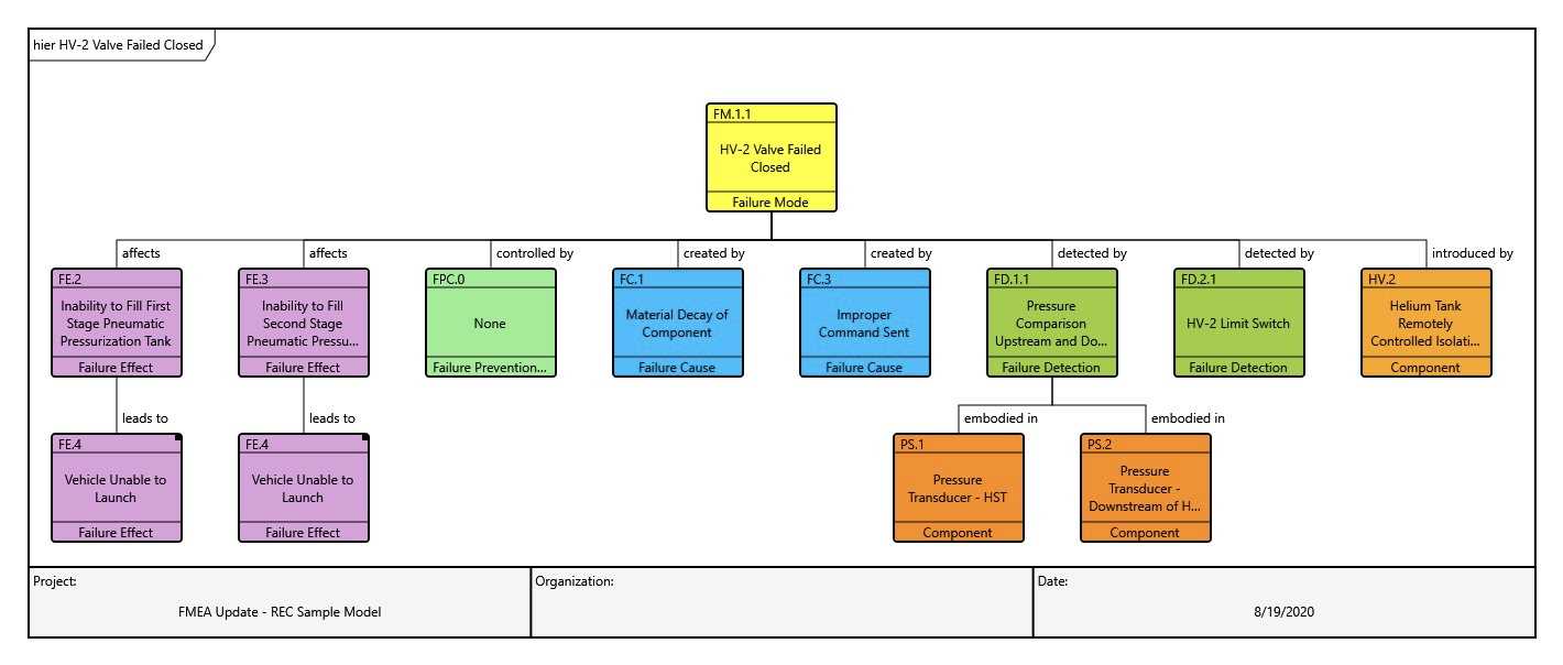 Figure 3: Example of the FMEA extension applied to the failure mode of a valve in the ground support systems for a launch vehicle platform.